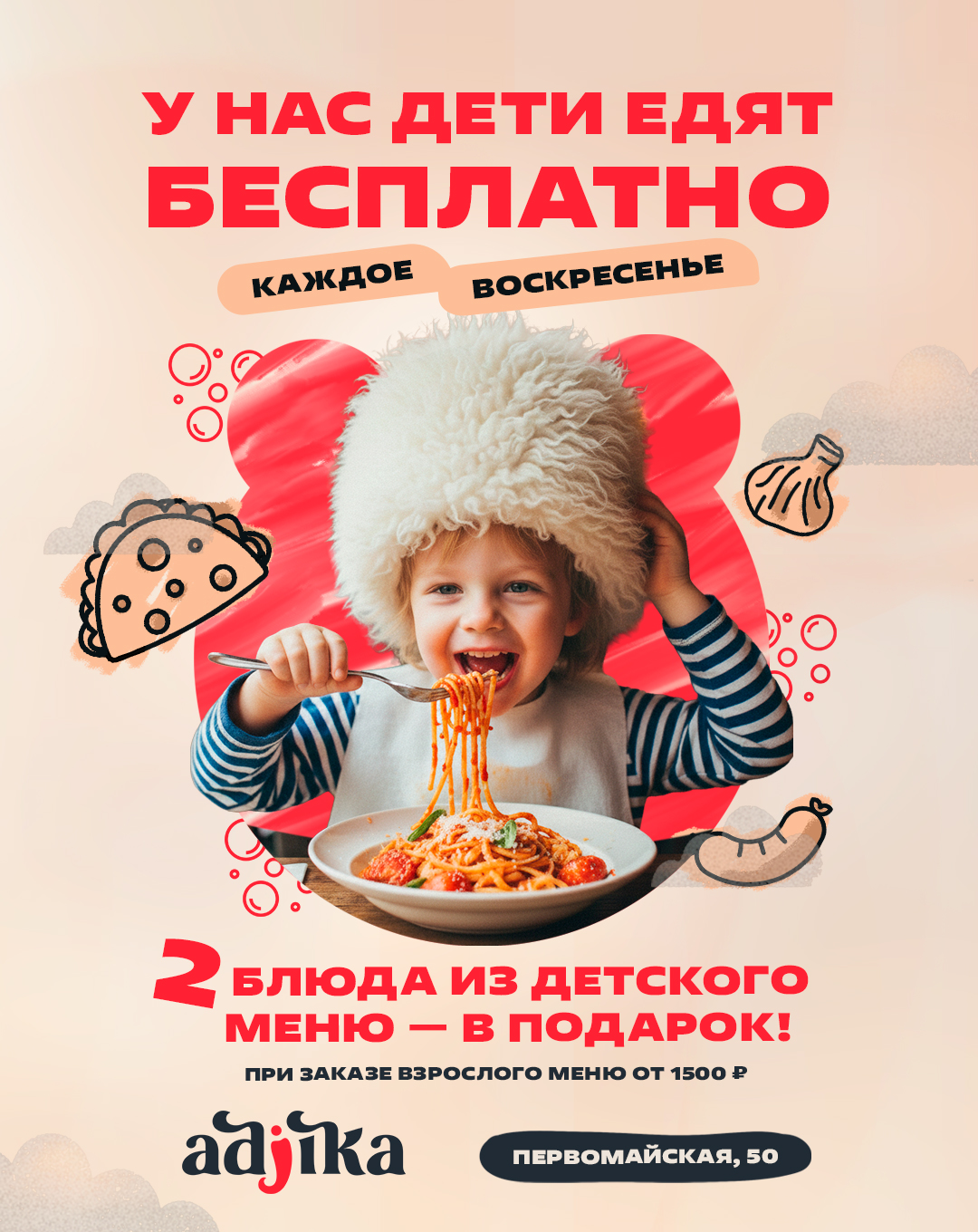 Каждое воскресенье в ресторане «Аджика» на ул. Первомайская, 50 — семейный день